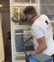 Before you start painting, it’s important to prepare the surface properly. Make sure that you’ve removed any hardware, cleaned all surfaces with a degreaser, and allowed all of the pieces to dry completely before beginning. Depending on the condition of your cabinets, you may need to sand the surface and apply a primer before moving onto the paint. Using a wood filler and sanding sponge is also a good idea, especially if there are any holes or dings.
